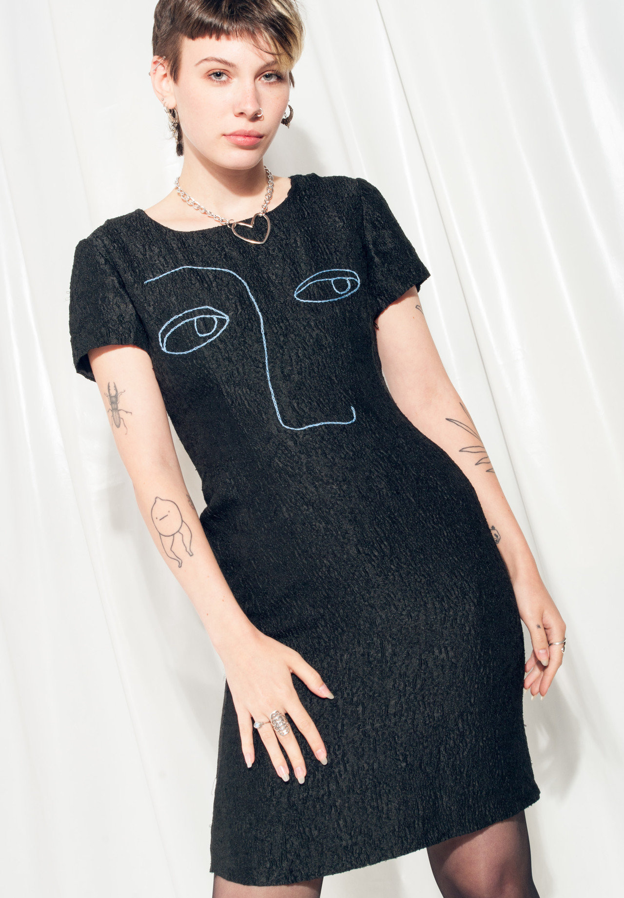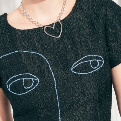 Artistic Details: Simple line art face embroidery on the chest adds a modern touch, evoking a chic, gallery-like vibe.