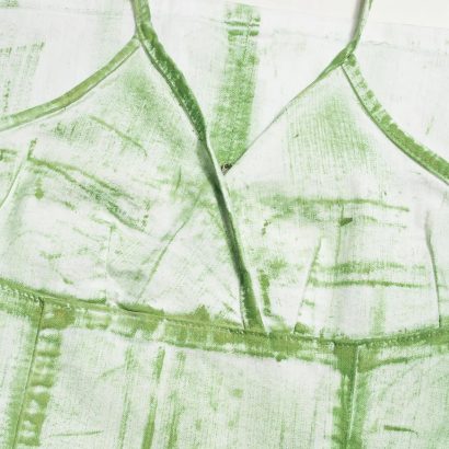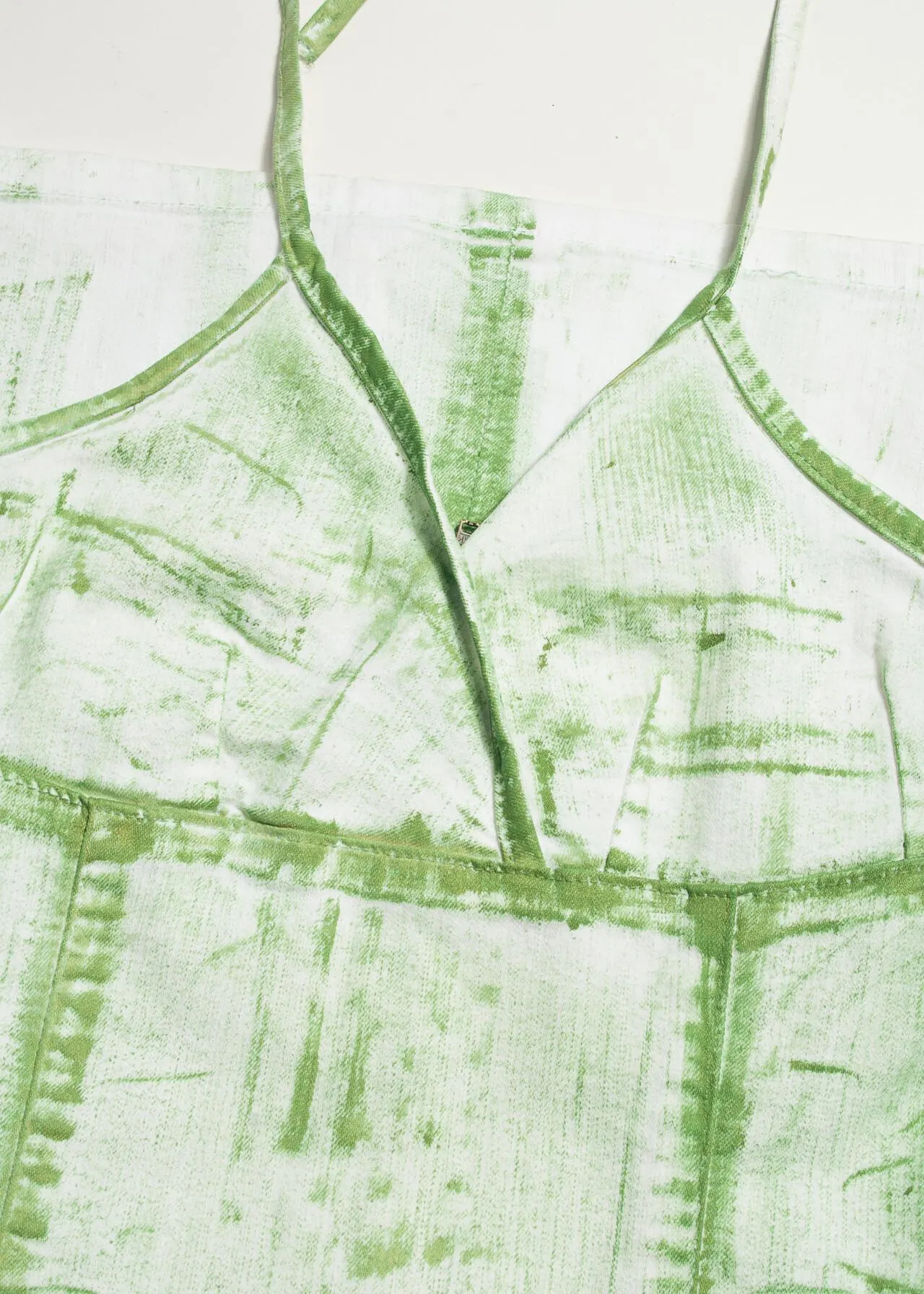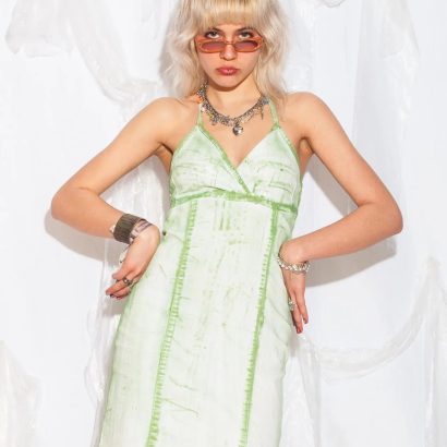 Y2K style: A light green and ivory colorway with a marbled wash and bold contrast stitching.