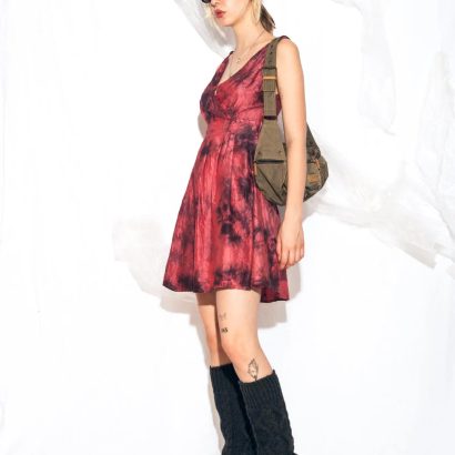 Eye-Catching Print: Hand-dyed red and black wash creates an artistic photoshoot look.