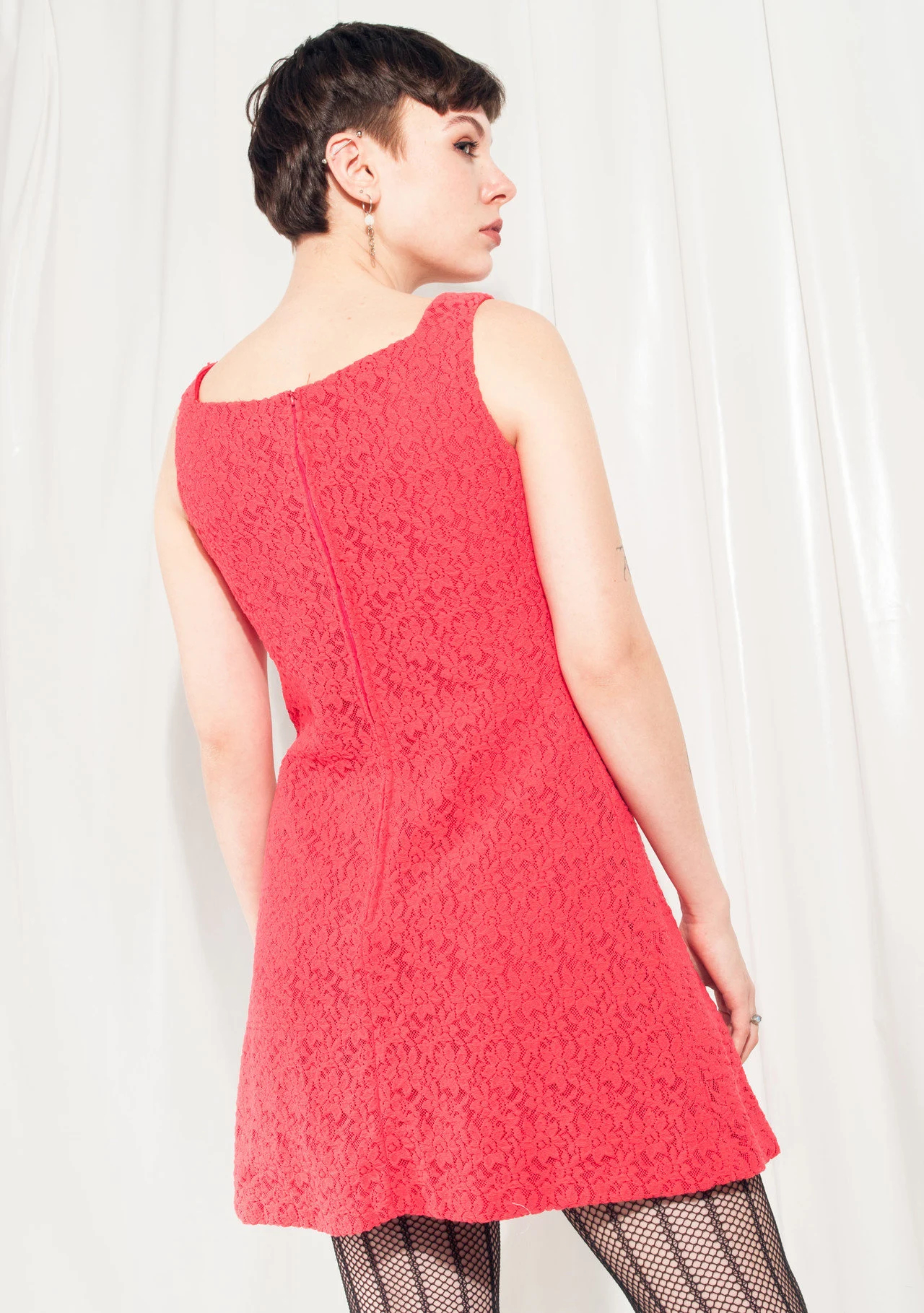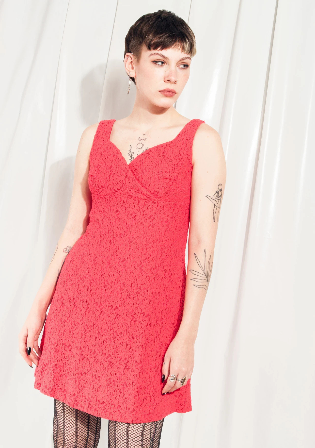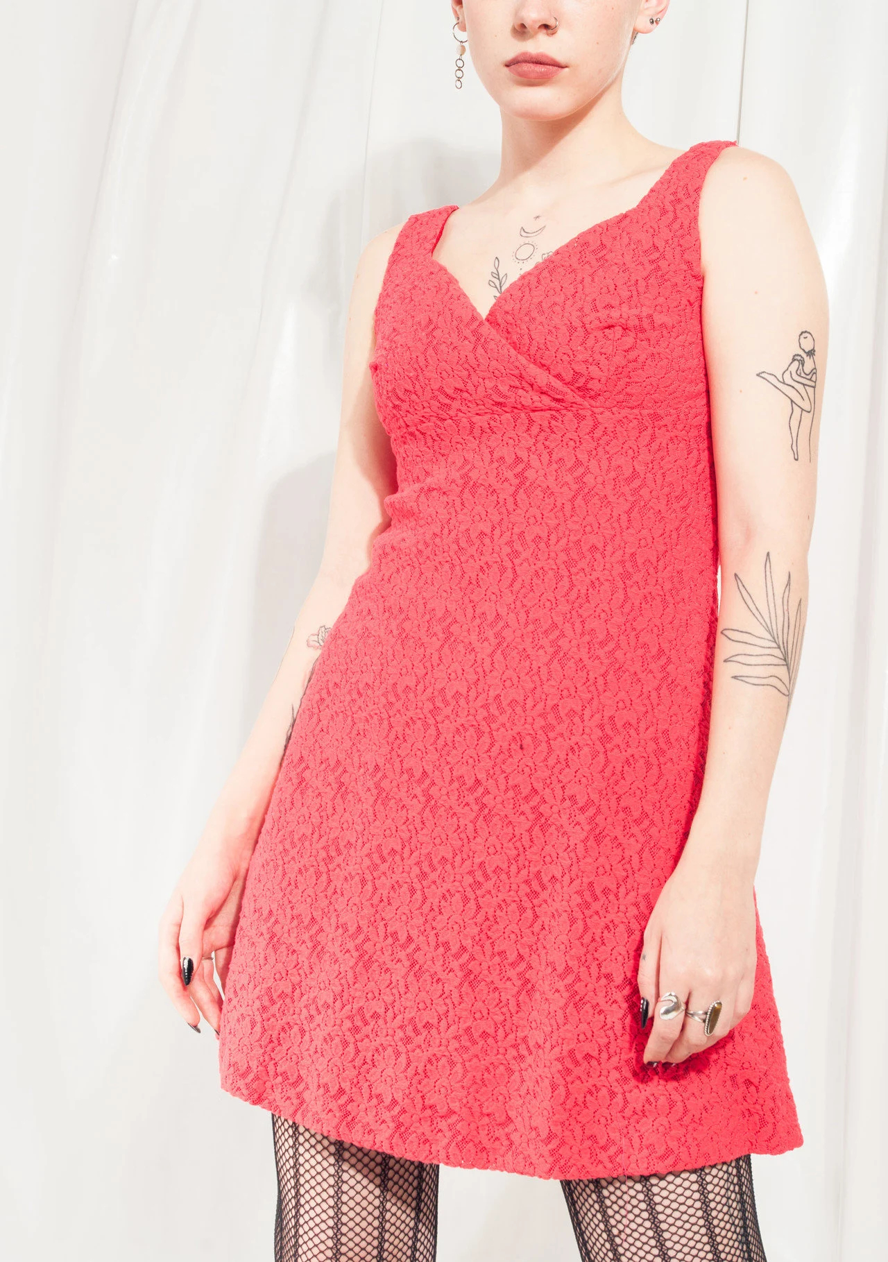 This red mini dress, with its sculpted V-neck and textured floral lace A-line skirt, is bright and bold, showcasing feminine charm. The silhouette is fitted without being constricting, and the soft lining ensures comfort from the first toast to the last dance. Pair with heels and a clutch for a celebratory occasion, or with boots and a leather jacket for a chic urban look.