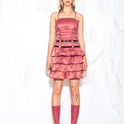 Be the first to review “Rose Satin Ruffle Mini Dress”